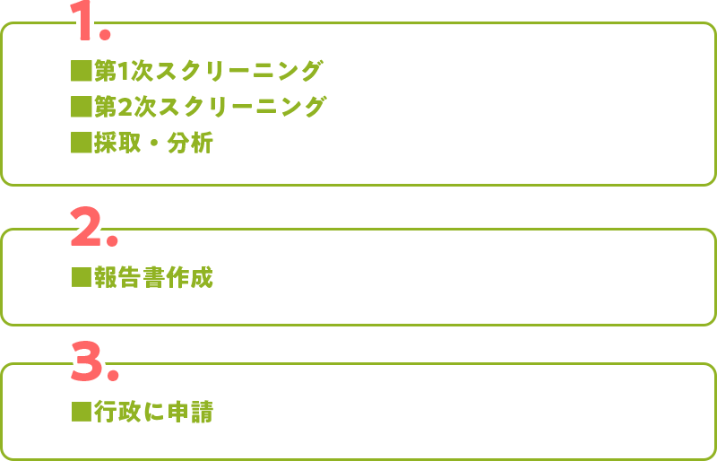 建築物石綿含有建材調査者の有資格者が責任を持って調査、報告書作成、行政へ報告致します。